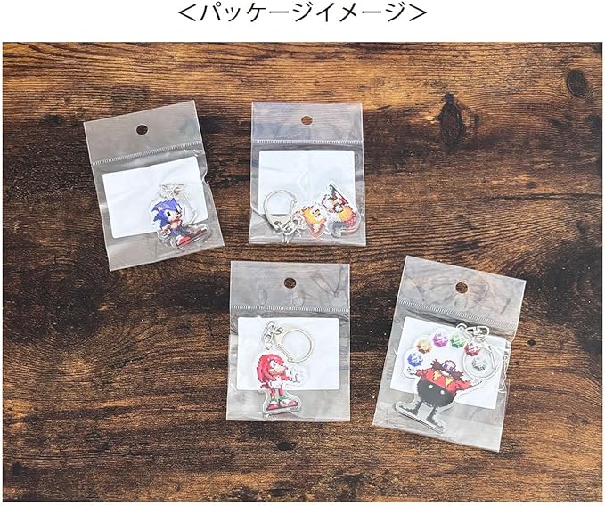 ドット絵で描かれたソニックキャラクターがかわいいデザインのアクリルキーホルダー。