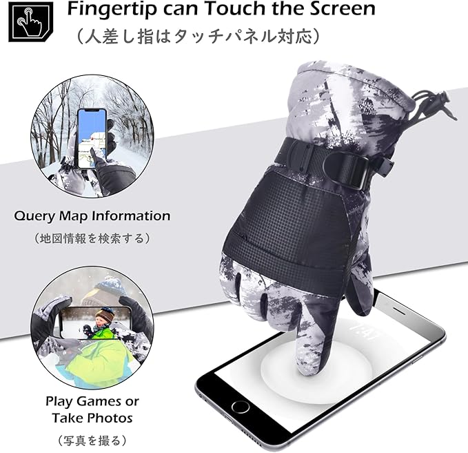 【スマホ対応】左右の人差し指はタッチパネル対応のPU導電素材を採用し、タッチ感度が抜群、ほとんどのタッチスクリーン操作が可能なスキーグローブです