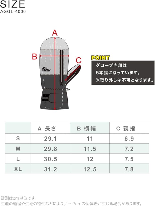 [アッシュグリーム] スノーボード スキー ミトングローブ 防水 防寒 スマホ対応 インナー付き メンズ レディース AGGL-4000