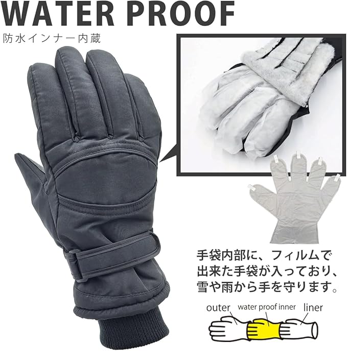 防水インナー内蔵 厚手 ウレタン インサート グローブ メンズ Lサイズ 防水 通勤 通学 自転車 バイク 雪かき 雪下ろし 除雪 ウインター スキー スノー 男性 紳士