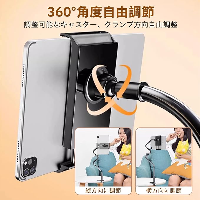 タブレット スマホ 両用 スタンド 寝ながらタブレットスタンド 全機種対応 寝ながらスマホ 携帯360自由回転 土台強化 安定性 柔軟自由調節 フレキシブルアーム付き 幅広い互換性 4-10.6インチ 手帳型ケースにも対応可能