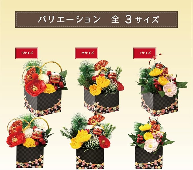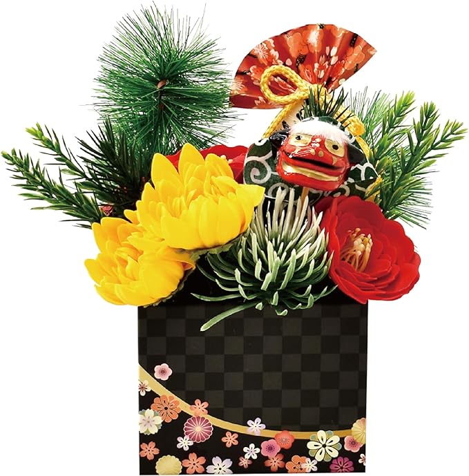 ポピー名古屋 ソープフラワー 造花 シャボンフラワー 造花 ギフト プレゼント 正月 フラワーボックス 椿 菊 約20cm 玄関 正月飾り 新春 獅子舞 SBL-224 Mサイズ