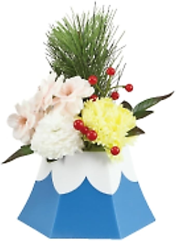 正月飾り 卓上 ソープフラワー アレンジ 松飾り フレグランスフラワー 造花 新年 新春の花 菊 富士山 置物 バッグ付き (青富士)