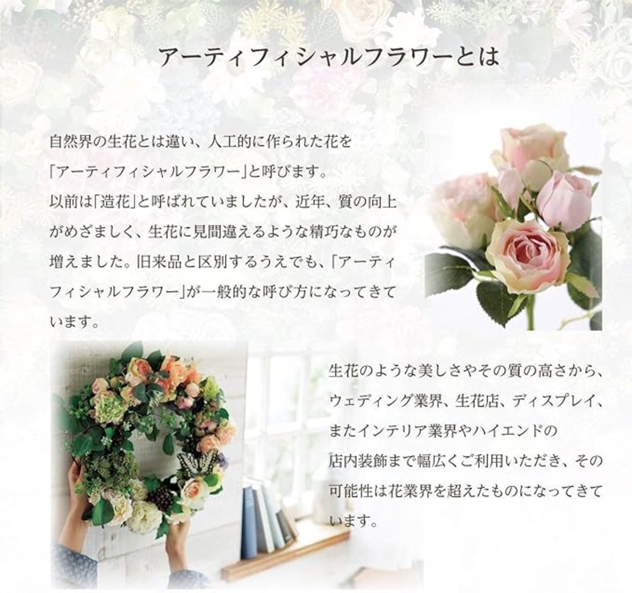 アーティフィシャルフラワー(造花)なので陽の届かない場所でも気軽にお楽しみいただけます。