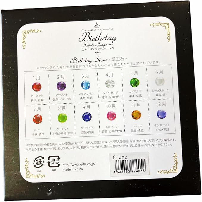 誕生石:6月の誕生石であるムーンストーンをモチーフにしたガラス製の装飾付き(本物の石ではありません)