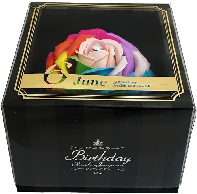 キューフラ(Q-FLA) ソープフラワー 1輪 バースデーレインボー 6月 誕生石 ムーンストーン レインボー 一輪 ボックス ギフト 774058