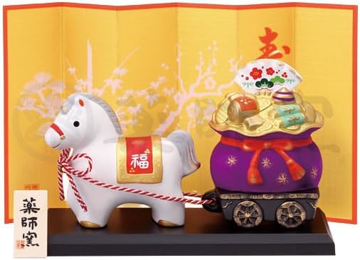 薬師窯(yakushigama) 錦彩 招福 午 (福運び) 【47】 2026年 令和8年 干支 うま 新年 置物 縁起物