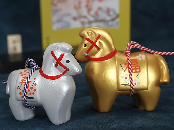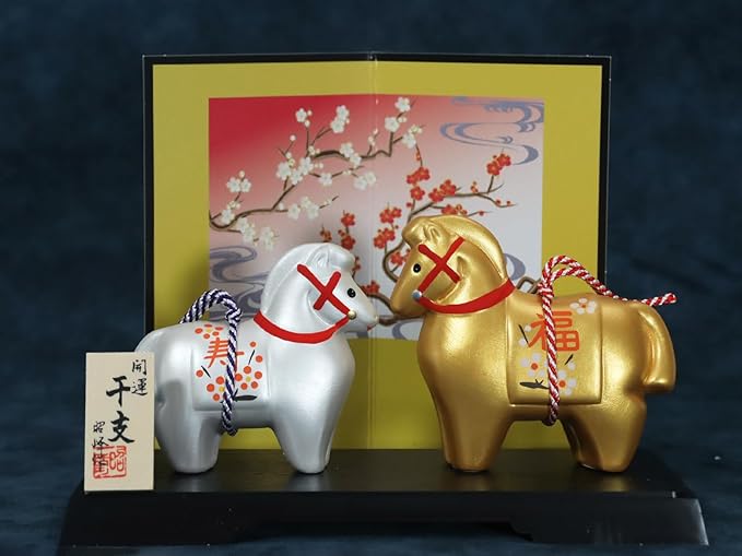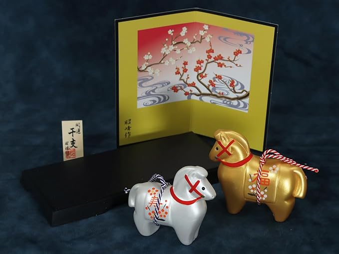 【限定商品】昭峰 2026年(令和8年) 干支の置物 馬 うま 午年(うま年)開運 金銀 紅白 梅 福午 (開運シール付)