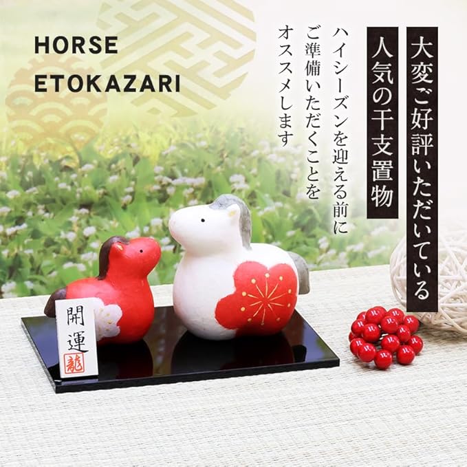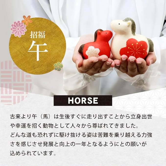 大阪長生堂 干支飾り 干支置物 午 馬 ウマ うま 十二支飾り 正月飾り オリジナル木札無料特典付(別送) ちぎり和紙 紅白親子福丸午