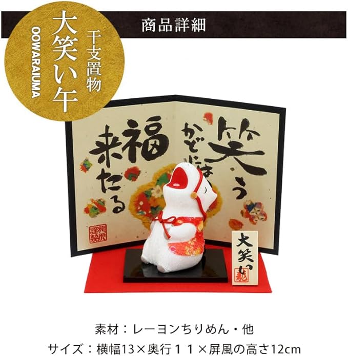 毎年早期完売!笑う門には福来たるシリーズ。厄は笑いでふき飛ばせ!笑って迎える新しい一年!大笑いの午の干支置物です。