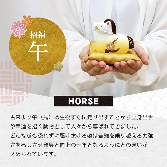 大阪長生堂 干支飾り 干支置物 午 馬 ウマ うま 十二支飾り 正月飾り ちりめん オリジナル木札無料特典付(別送) 金運午