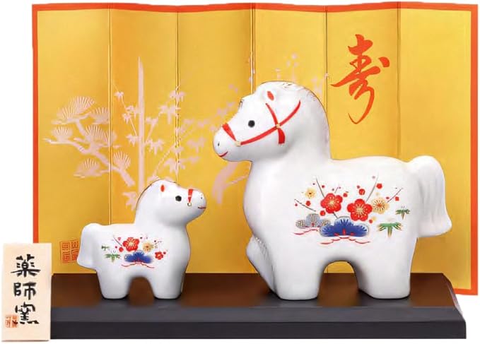 【限定商品】薬師窯 2026年 干支の置物 馬 うま 午年(うま年) 白祥 招福 午(松竹梅・親子) (開運シール付)