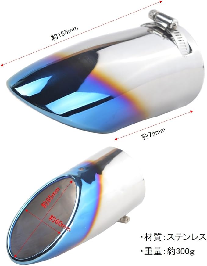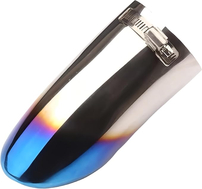 マフラーカッター 汎用 軽自動車 乗用車 車 ドレスアップ カスタムパーツ DIY 車外装パーツ カー用品 初心者 改造 簡単取り付け ステンレス製 斜めカット (ブルー&シルバー)