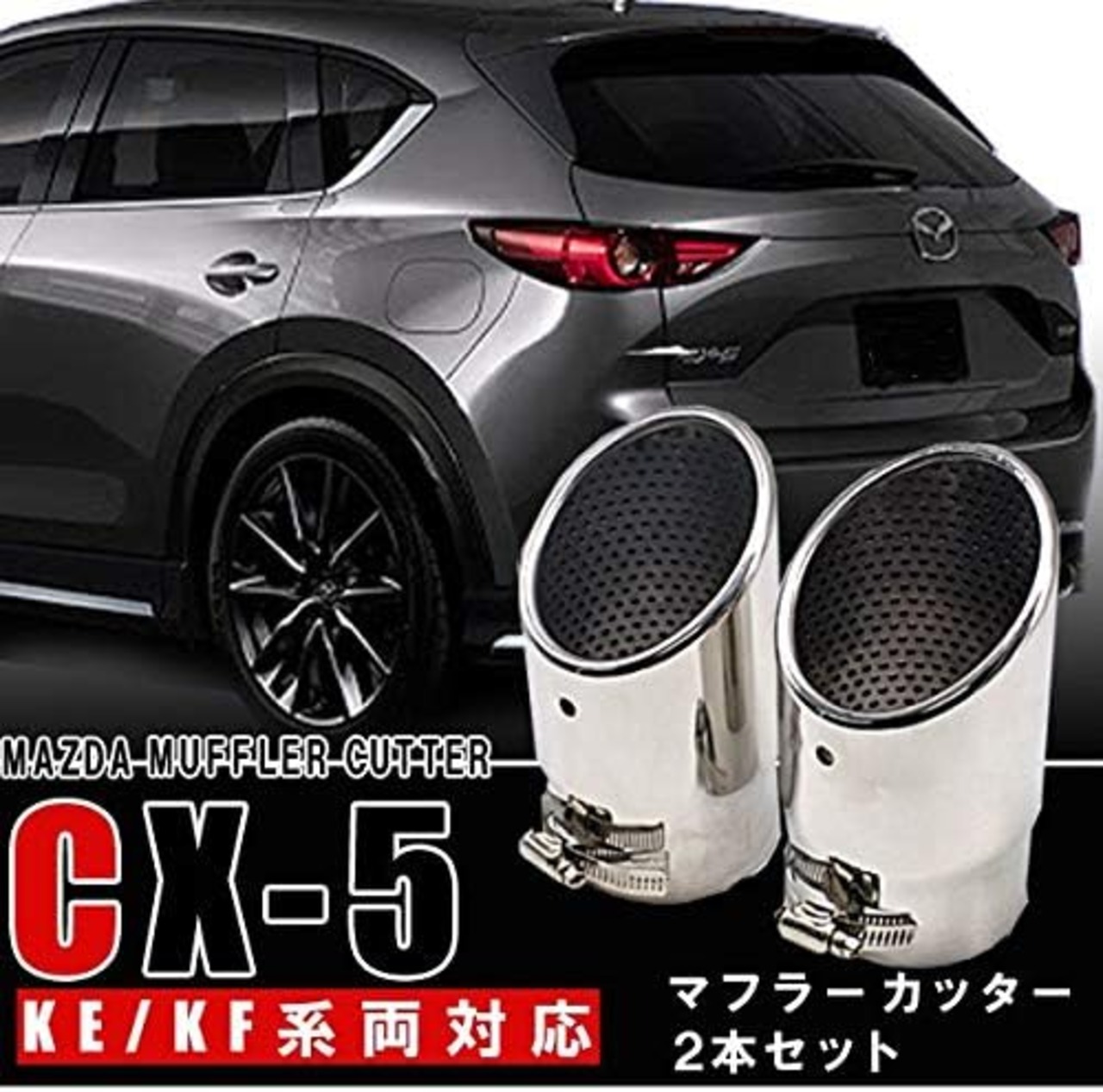 Wellvie マツダ CX5 CX-5 マフラーカッター KE系 KF系 ステンレス カーパーツ カー用品 車専用 2本セット シルバー シングルタイプ スラッシュカット パーツ カスタム 排気系