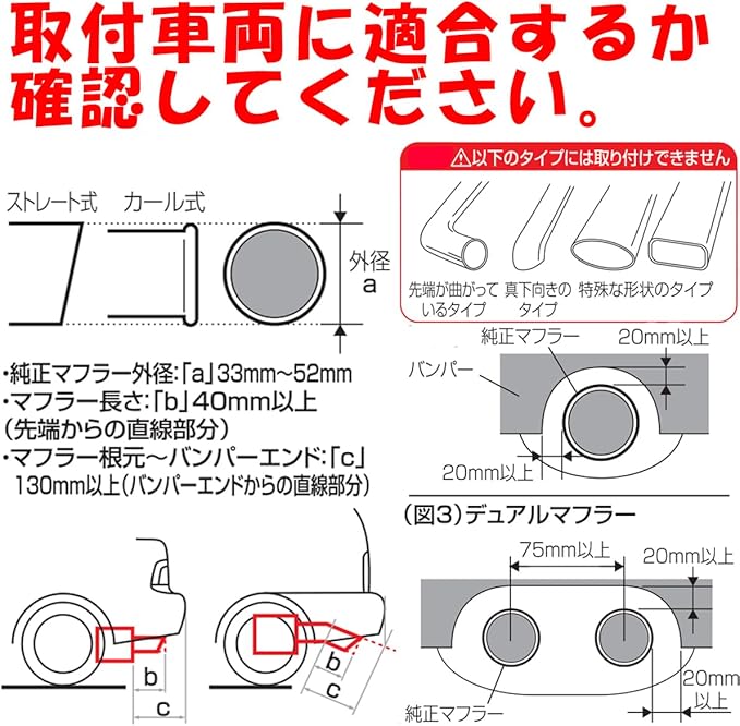 ●高硬度ステンレス(SUS304)使用で軽量で錆びにくいマフラーカッターです。