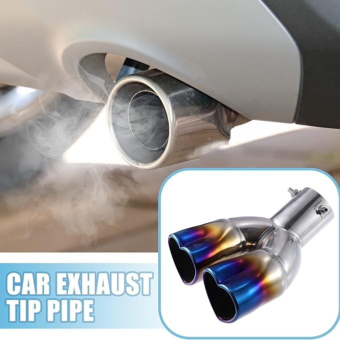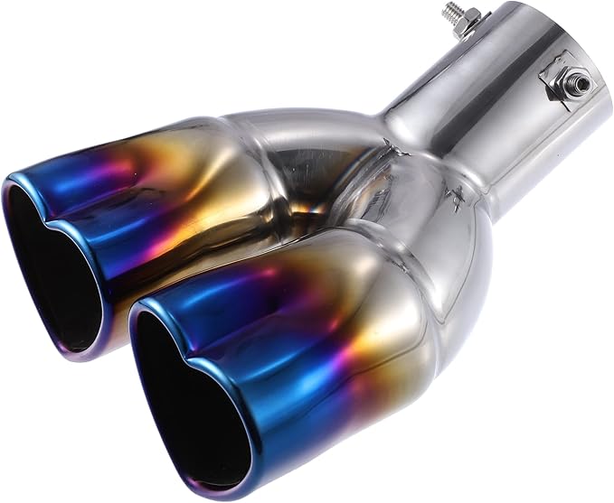 マフラーカッター マフラー エキゾーストパイプ 排気管 下向き 2本出し ダブルアウトレット 汎用 車外用品 ハート型 マフラーチップ テールパイプ ボルトオン 金属 適用径60mm チタン焼き調