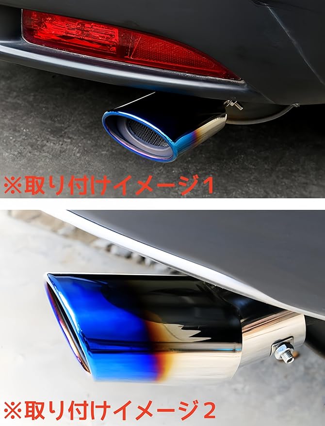 マフラーカッター 汎用 軽自動車 乗用車 車 ドレスアップ 下向きマフラー用 カスタムパーツ DIY 車外装パーツ カー用品 ステンレス製 初心者 改造 簡単取り付け (シルバー)