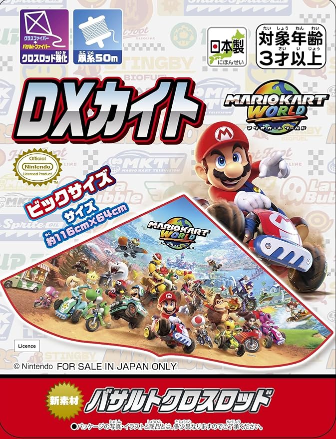 ✅【マリオカートワールドのキャラクターたちが空を駆けるカイトに!】大人気ゲーム「マリオカートワールド」のキャラクターたちが、今度はカイトになって登場!マリオやルイージ、ヨッシーたちが風を切って空を走る姿はまるでレースそのもの。広げると116 64cmの大型サイズで、青空の中でもひときわ目を引く存在感です。