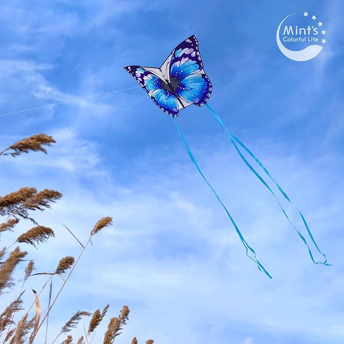 Mint's カラフル ライフ バタフライカイト 子供と大人向け 簡単に飛ばせる大型シングルライン凧 300フィートのストリングカイトハンドル付き