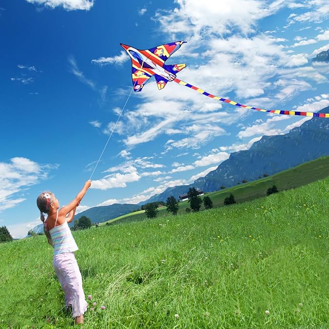 Mint's カラフル ライフ 飛行機 凧 子供&大人用 簡単に飛ばせる飛行機凧 男の子と女の子向け 初心者に最適なビーチ凧 300フィートの紐と長い尾