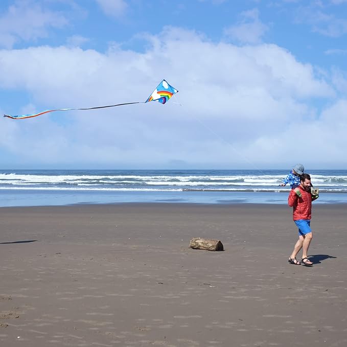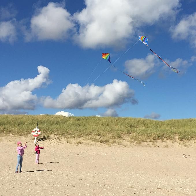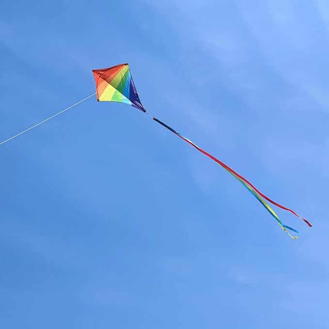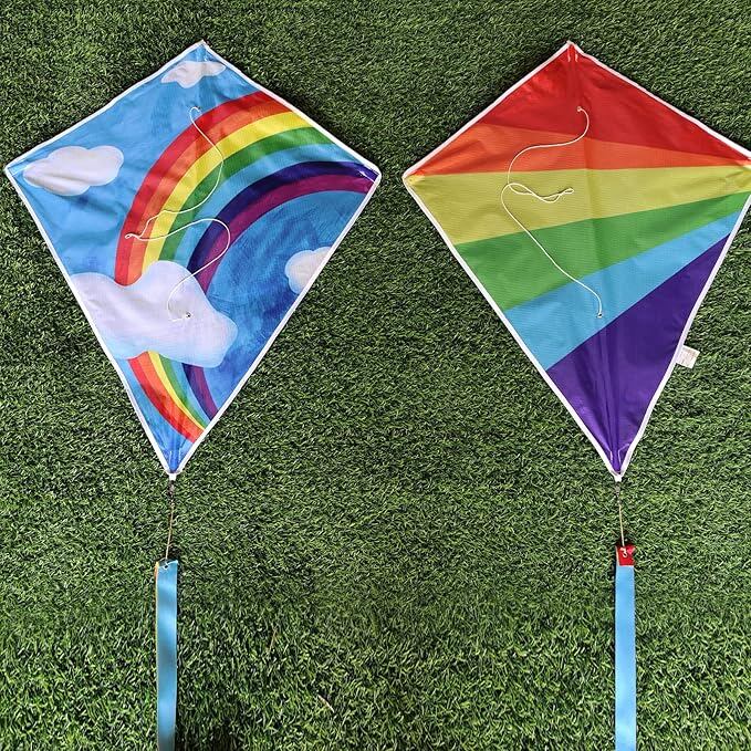 ユニークなダブルレインボーダイヤモンド凧セット。 凧のサイズは31.5インチ x 27インチで、お子様向けにデザインされた凧キットです。 各凧は個別に梱包されており、300フィートの丈夫な凧ひもが付いた凧ハンドルが付属します。手に入れたらすぐに飛ばすことができます。