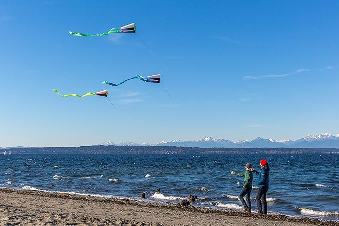 素晴らしいスターターカイトは、これほど簡単でも簡単でもありません。ポーチから取り出し、ラインにクリップで留めて飛ばすだけです。 ポケットフライヤーはポケットやグローブボックスに収まるので、冒険に行く場所ならどこへでも飛行できます。 シングルラインコントロールで飛ばしやすく、非常に丈夫です。 オールファブリックデザインにより、組み立てるものがなく、高品質の編組ラインと小さな手にぴったりフィットするコンパクトなフープワインダーですぐに飛ばせます。 ユニークなフォークテールは、不安定な風でもさらに安定し、遠くから目を引く色のしぶきでスポットをマークします。 あらゆる年齢の方に最適なギフトです。