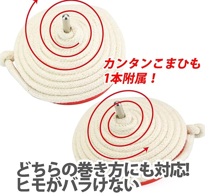 こまひも3本、説明書入り(※こまのロゴ部分の印刷色は製造ロットによって異なる場合があります)