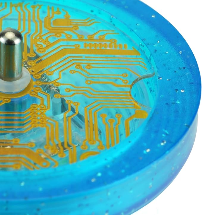 初めてのお子様でも回しやすいコマ世界大会認定こま ヒバリに光る回路を追加。地面でのこま回しがメインの遊び方になります。ある程度強く回転をかけるとLED回路が色鮮やかに光ります。