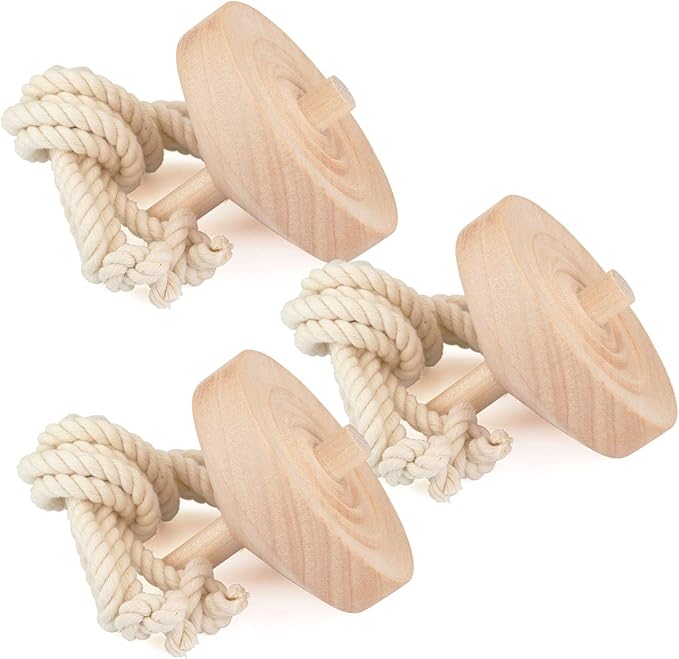 3個セット。こま本体3個、ひも3本付属。直径が大きく、回したときの安定感があります。子供でも巻きやすい太ひも付属