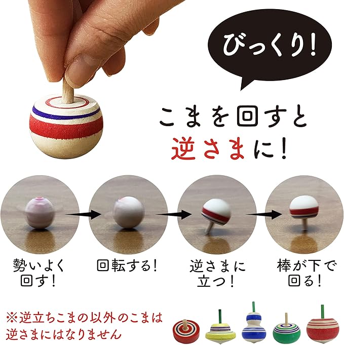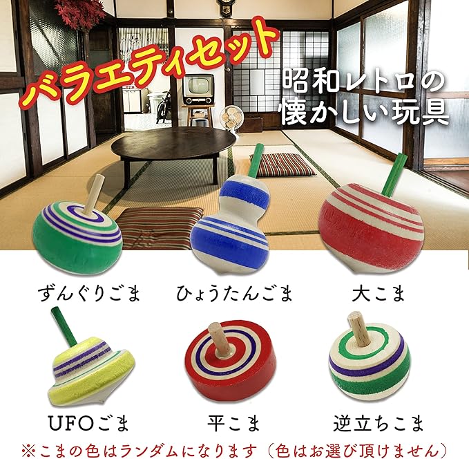【昔なつかし手回しコマ入門セット】 コマ 逆立ちこま 手回しこま 相撲こま 知育玩具 木のおもちゃ 男の子 キッズ (ミニごま6種バラエティセット)