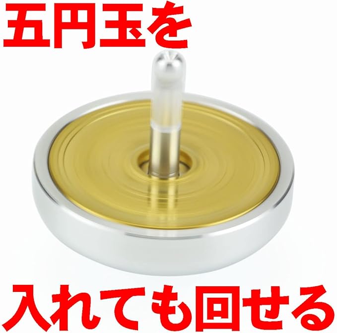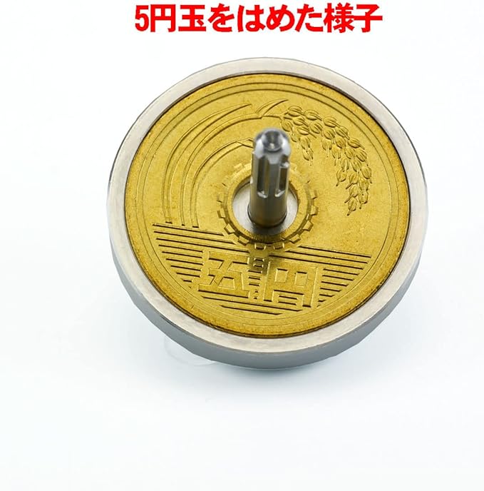 ※5円玉は付属していません。 スピンギアの企画で、東京葛飾区の町工場、ミツミ製作所の製造の精密な削り出し独楽。