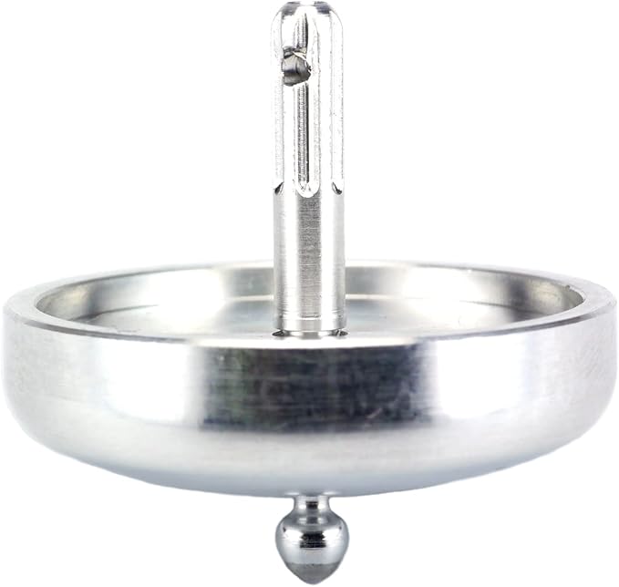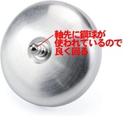 軸を延長するとともに、先端部に鋼球を搭載。傾きにつよくなりより長く回る設計になっています。直径24.8mmの削り出し制作による精密なこまです。5円玉をご用意いただければ、5円が重りになりさらに回転時間が伸びます。