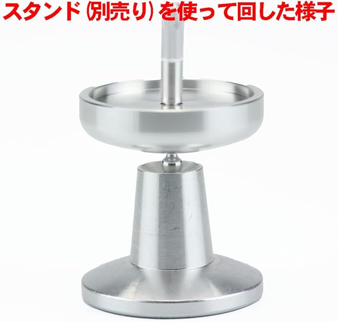 アルミボディの軽快なまわりだしを”気持ちいい”と感じる設計です。平均的な空転時間は2,3分です。長く回すための独楽ではありませんが軽くてお子様でも回しやすいです。ぜひ気軽に遊んでいただければと思います。