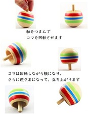 【安心の木製】金属部品を使わずすべて木でできた昔なつかしひも付きの木ごまです。木製なので小さなお子様でも安心してお使い頂けます。また投げごまが難しい方でも手で回せる逆立ちこま(3個)が入ったお得な2種セットですので2種類のコマをステップを踏んでお遊び頂けます。