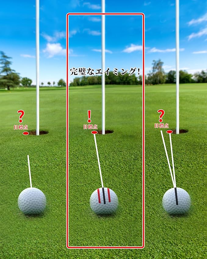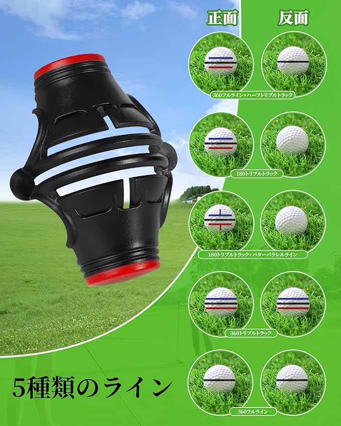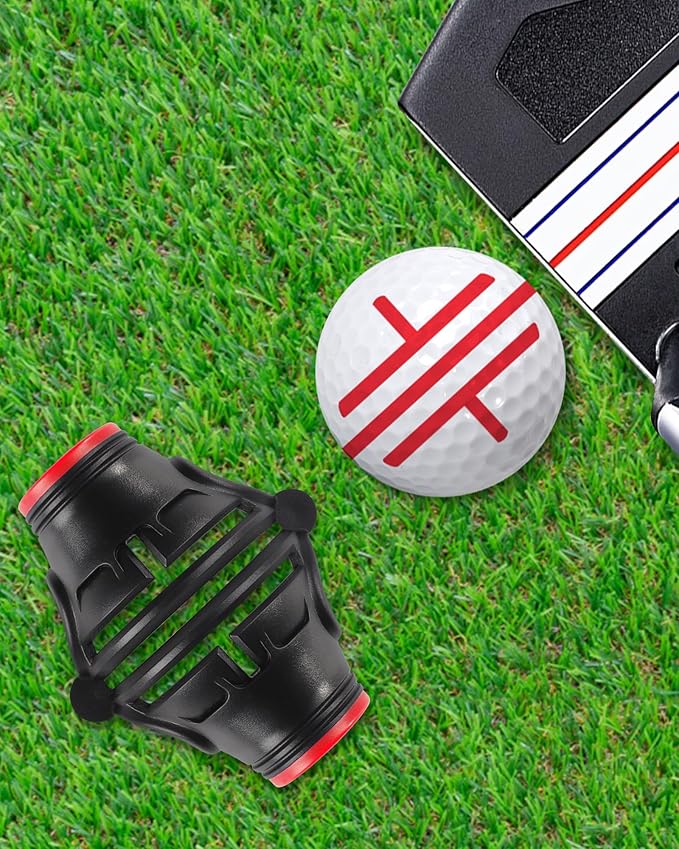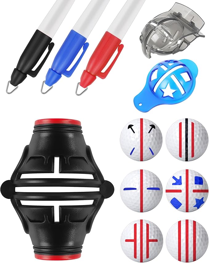 ゴルフボールマーカー 180 360 ボールラインマーカー 簡単に線が引ける 持ち運び便利 ゴルフ場/自宅/室内/屋外 6点セット (マーカー*3個+ペン*3本) 黒赤