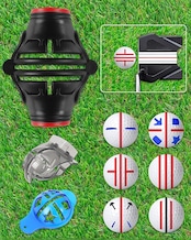 【様々なテンプレート選択】6つのアイテムが含まれています。1つ360度回転可能のゴルフボールラインステンシル、1つ半球ゴルフボールラインステンシル、1つゴルフボールクリップステンシル、3本ゴルフボールマーカーペン(黒+青+赤)。3種類の個性的なテンプレートと、黒、青、赤のゴルフマーカーペンがセットになっています。ユニークなマーク、ライン、アロー、シェイプを良く作ることができ、ボールを簡単に識別できます。