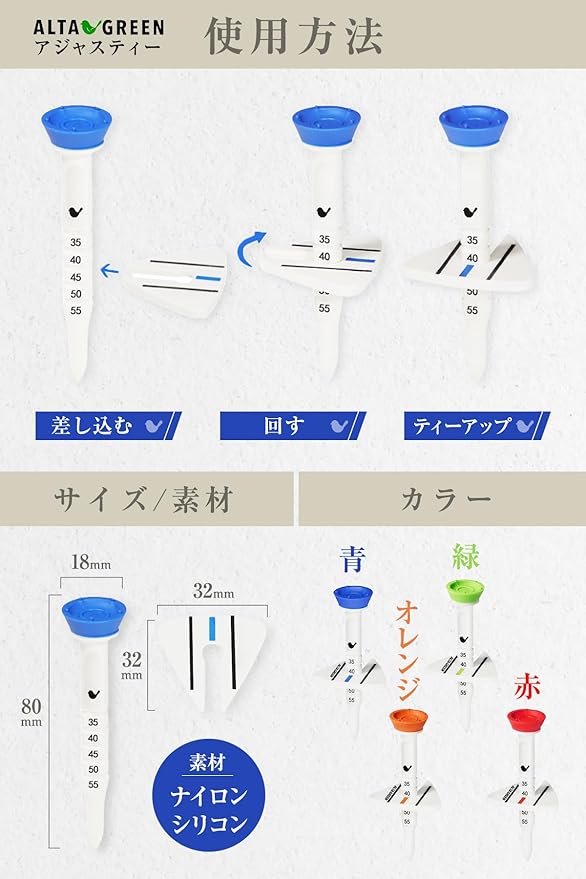 ゴルフ ティー アジャスティー 高さ調整可能 ロング ショート マーカー