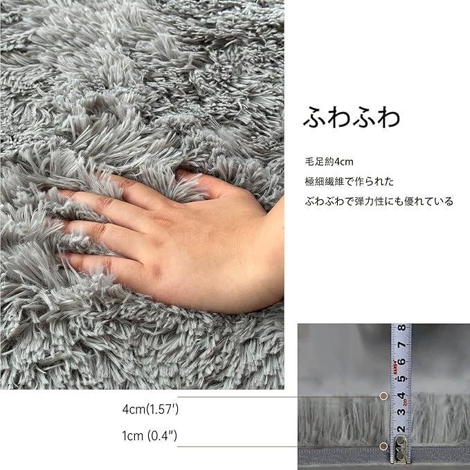 【厚手版仕様】サイズ:120 160cm 、重量:1.5KG ①毛足の長さ:約40mm ②厚さ:約10mm ③三層構造素材上層:極細ポリエステル繊維 中層:柔軟で弾力性抜群のスポンジ 下層:桜模様の不織布 ④付属品:8枚滑り止めシート