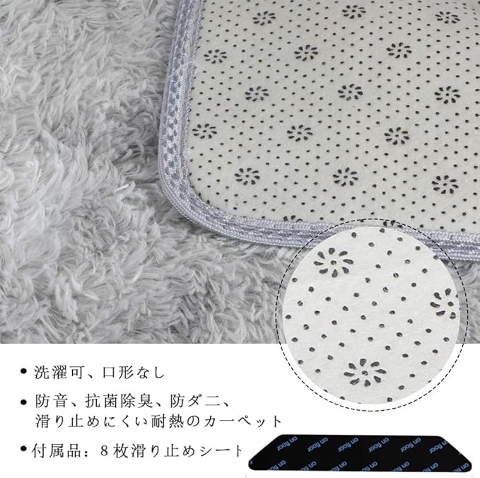 【滑り止めのアップグレード】裏面には桜模様の滑り止めポイントに施された、床にピタッと吸着する、強力な吸着力を発揮します。そして8枚のカーペット滑り止めシートつきまして、絶対に動かない。走り回る小さなお子様、年寄りやペットがいるご家庭にも安心です。また、下層の裏地に不織布を使用し、付属品の滑り止めシートも水洗無痕シートで、フローリングを傷つけません。