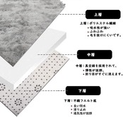 【極厚の中材・ふわふわ】SpyFlyLieのカーペットの中層は10mmほど厚いポリウレタンを使用し、足をのせた瞬間に「幸せ~」って思えるほど柔らかいです。リビングに敷くだけで部屋全体があたたかく、そして長時間座ったり寝転んだときでも、体が痛くなりにくいです。さらに、防音性にも優れていて、 歩行時の騒音を防ぐことができます。