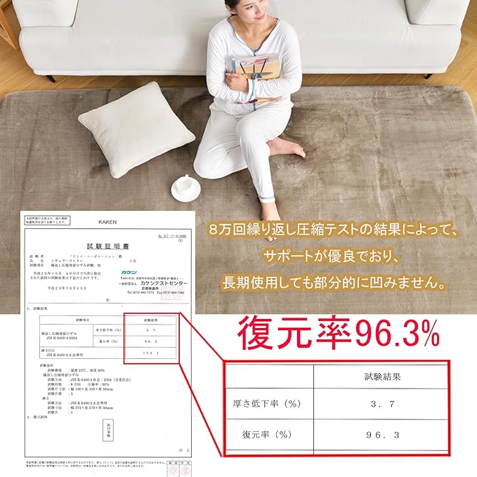 【サポートが優良である】この極厚ラグ素材の高反発ポリウレタンフォームは、80,000回の繰り返し圧縮試験を受けており、優れたサポートと96.3%の回収率を備えており、この極厚カーペットを長期間使用しても局所的なへこみはありません