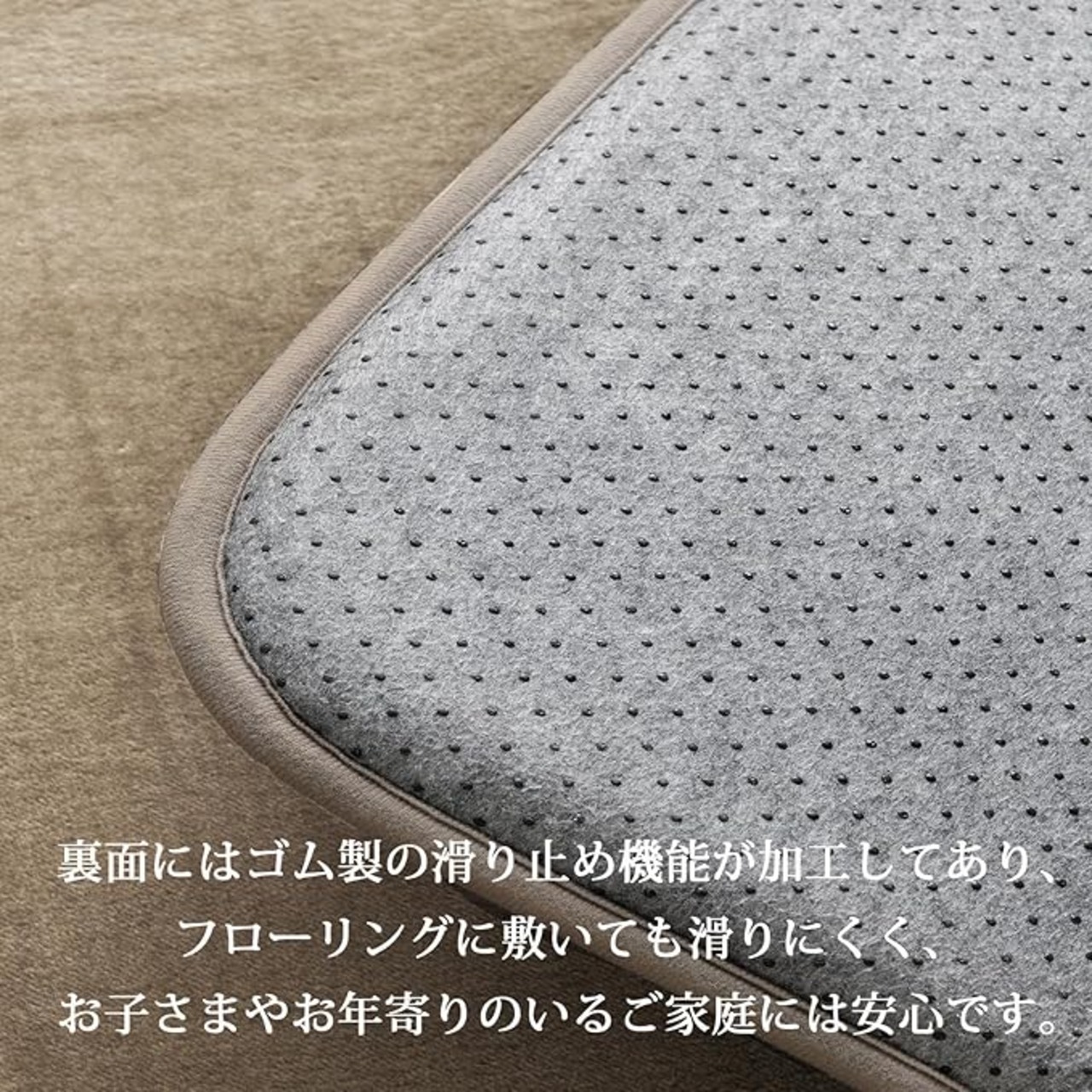 【滑り止め付加工 】厚手ラグの裏面は熱に強い、環境にやさしい原料を使って滑り止め加工されており、ホット カーペットと一緒に使用する時、加熱時によっての匂いがしたり、溶ける心配はありません。フロアマットとして、カーペット カバーで覆っても滑りにくく、子供や年配の方でも安心で使用することができる