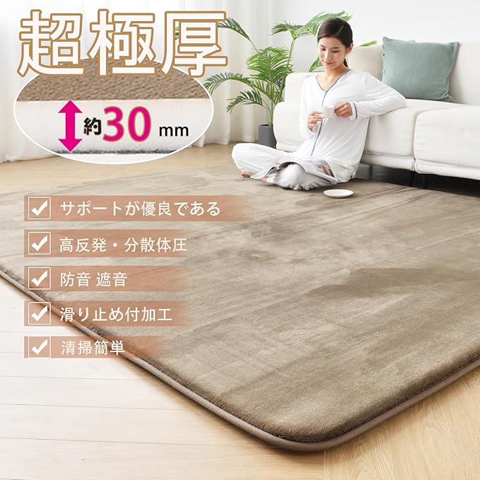 【清掃簡単・丸洗いOK】この極厚カーペット適度な毛足の長さで、ゴミやほこりが絡まりにくい、掃除が簡単です。掃除機にかけやすくて、お手入れ簡単です。いつでも清潔、快適にお使いいただけます。手洗いや洗濯機にも綺麗に洗濯できます。注意:洗濯機に洗濯する場合、単独で洗濯してください。洗濯ネットを使用してください