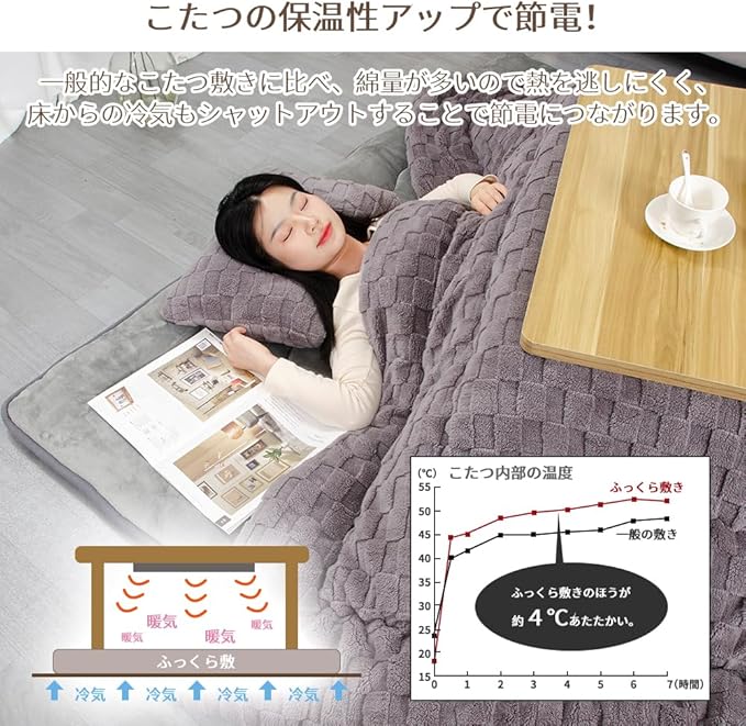 【ミニサイズのこたつ中・下敷き】畳みやフローリングの上でも快適にご使用いただけます。小さいサイズなので、使用用途は様々・持ち運び簡単♪お部屋のワンポイントとして、お子様のお昼寝として、ペットの休憩スペースとしてもおすすめです。