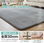 【極厚30mm・防音効果抜群】一般的なラグの厚みの6倍!厚さ約25mmの高密度ウレタンを使用し、底付き感を感じずゆったりくつろげます。体圧を均一に分散し、長時間座っていても疲れにくい。極厚ですので、お子供様とペットがマンション・集合住宅の中に飛び回っても下の階に音が響きにくいです。