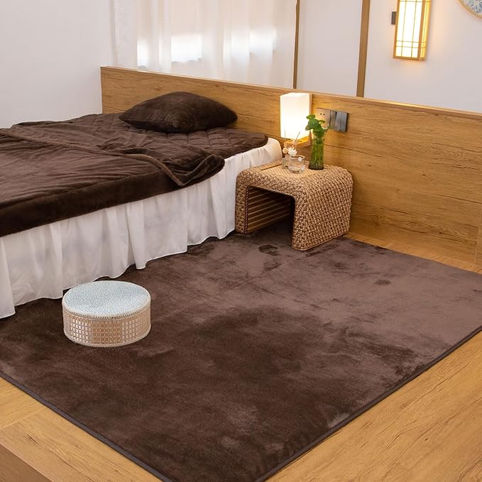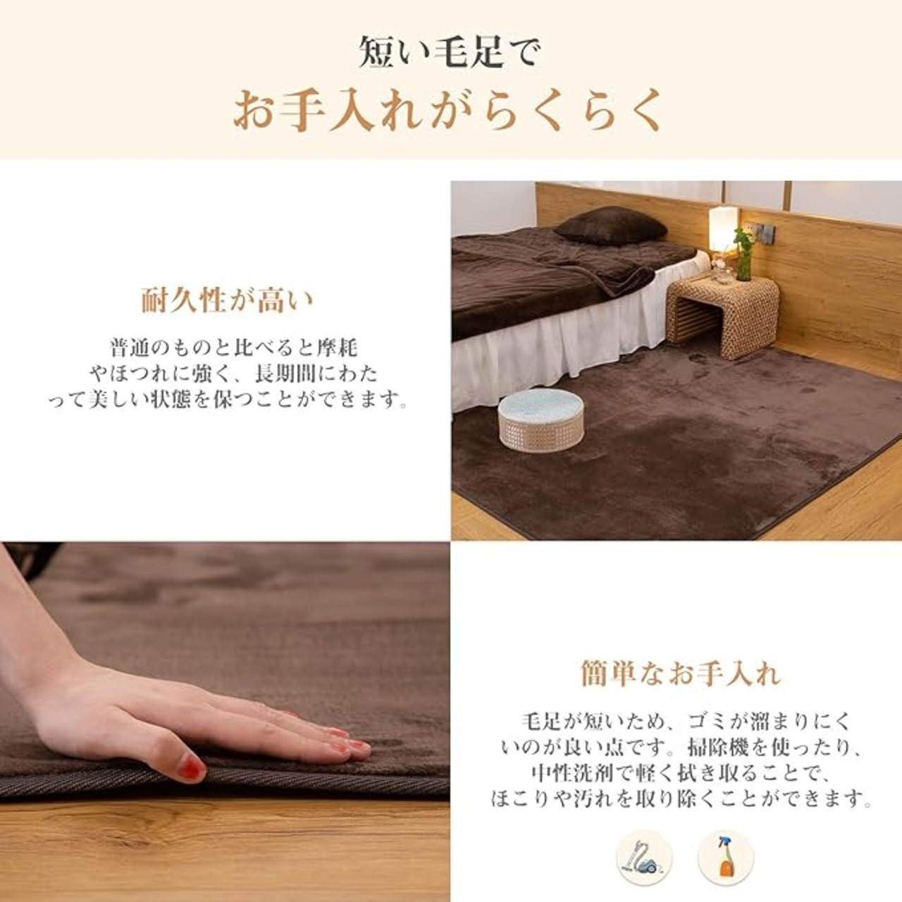 Qucover カーペット ラグ ラグマット ラグカーペット 約2畳 正方形 オールシーズン 防音マット 滑り止め付き 無地 (185cm 185cm,ブラウン)