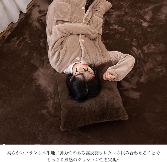 【基本仕様】サイズ:約2畳 185*185cm 正方形 厚み6mm 毛足4mm 素材:表地:フランネル 中材:ウレタンフォーム 裏地:ノンスリップ不織布 。