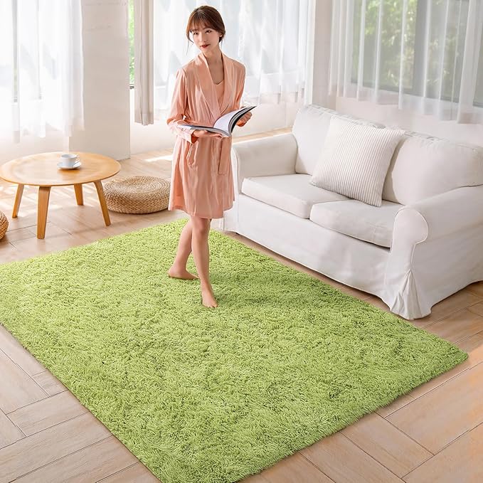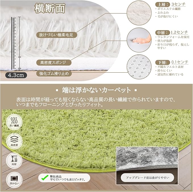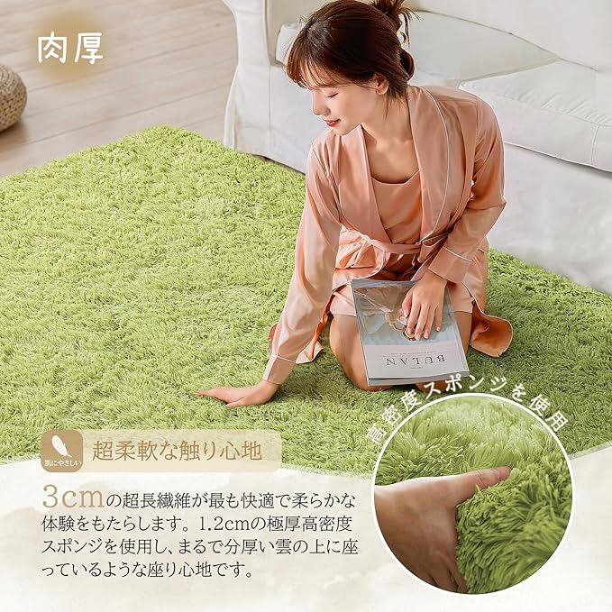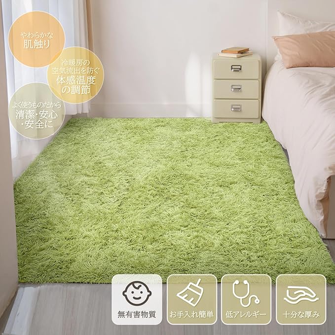 カーペット ラグ ラグマット 洗えるラグ【中層:極厚30D高密度ウレタン 独自技術の抗菌防臭加工】絨毯 オールシーズン快適に使用 滑り止め付き 高密度シャギーラグ グリーン 185 185cm