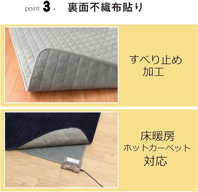 【ここがポイント】蓄熱効果で節電。お財布にも地球にもちょっとだけ優しい商品。また裏面は滑りにくい加工を施しているので、小さなお子様が走り回っても安心。