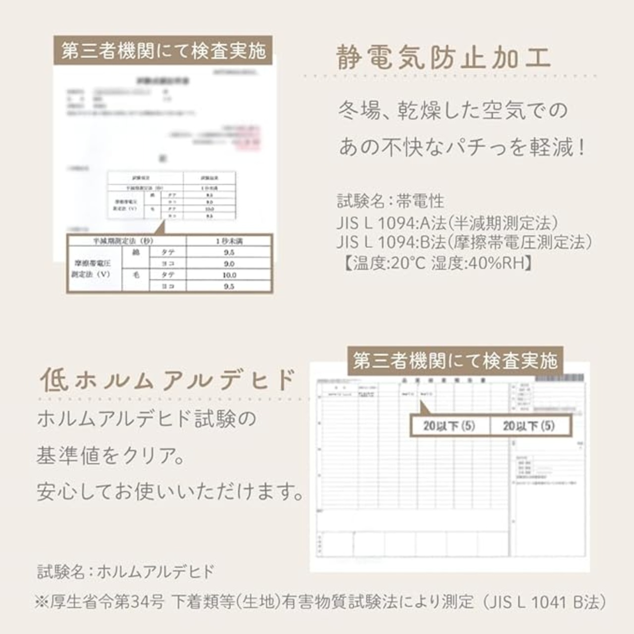表:毛羽部分:ポリエステル100%(フランネル長毛マイクロ330g/m2) グランド部分:ポリエステル100% 中綿:ポリエステル100%吸湿発熱綿 洗えるウレタン20D 10mm 裏:不織布滑り止め付き